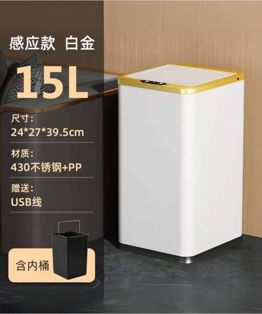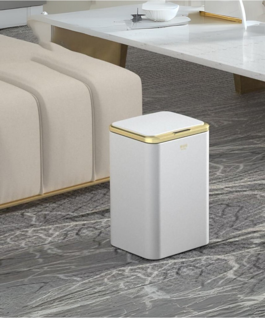 Stainless Stell Smart Induction Type Trash Can With Automatic Open Lid, Sanitary Bucket White Color