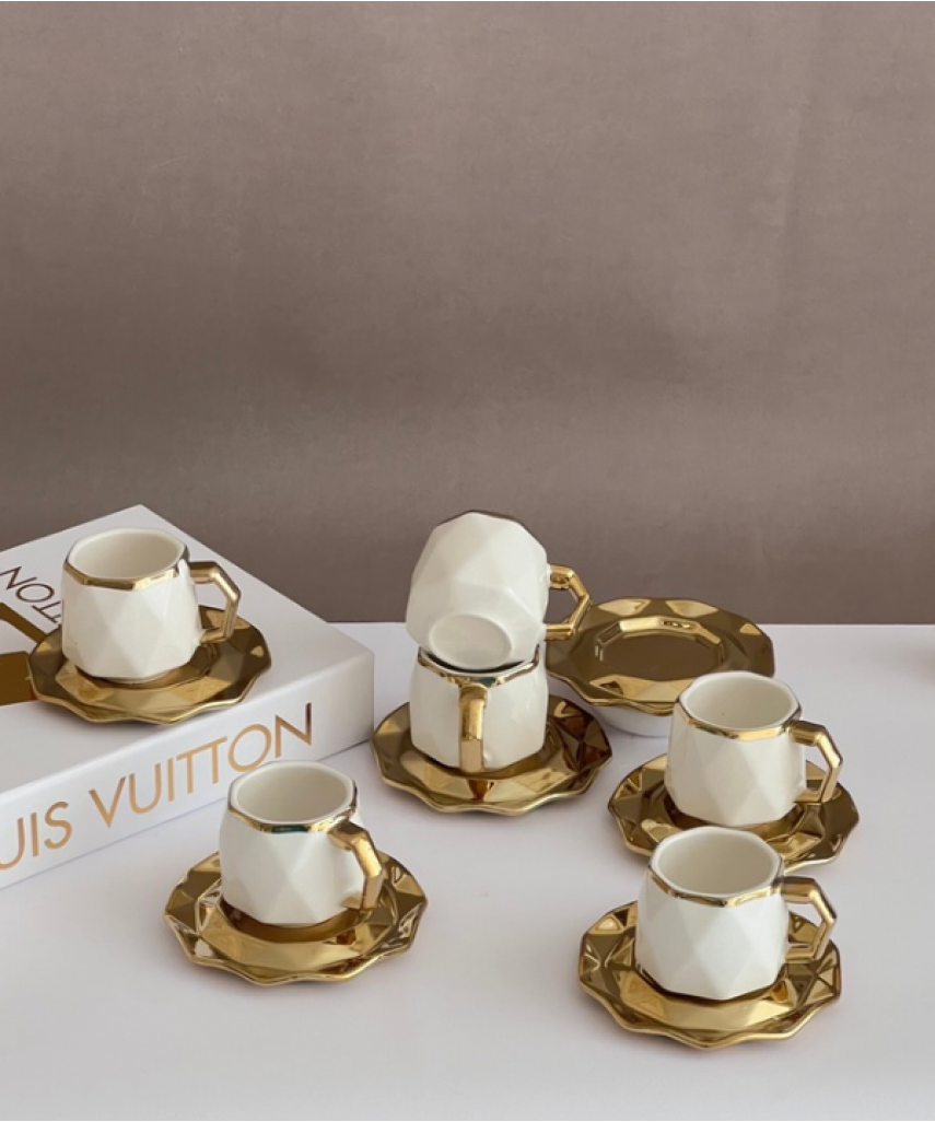 Anella 6 Person Coffee Cup Set White and Gold Color