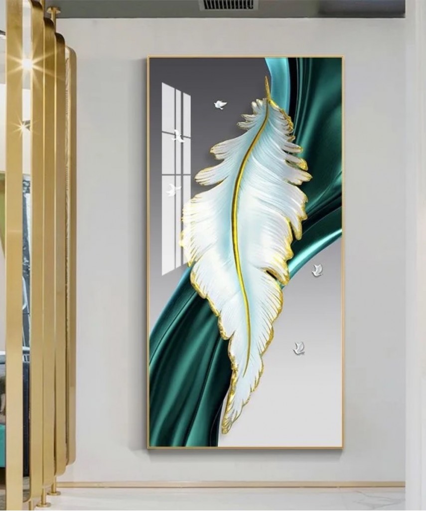 Light Luxury Crystal Painting Green Feather