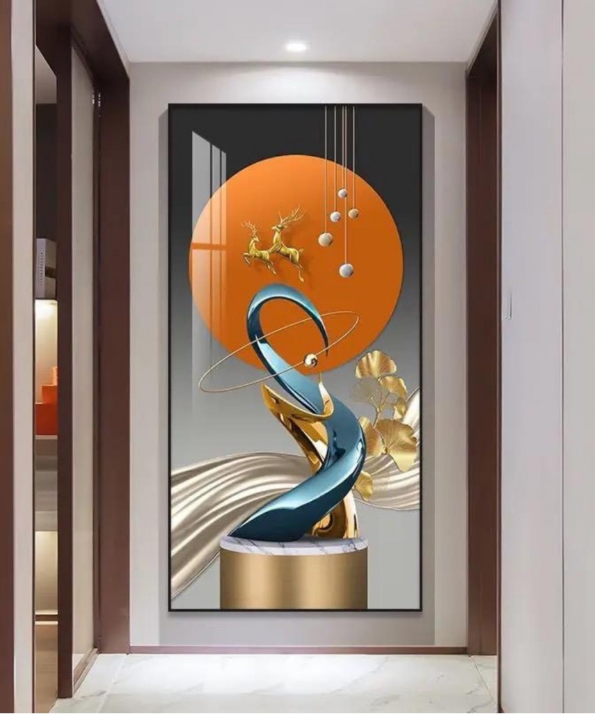 Light Luxury Crystal Painting Orange Color & Gold Cavre
