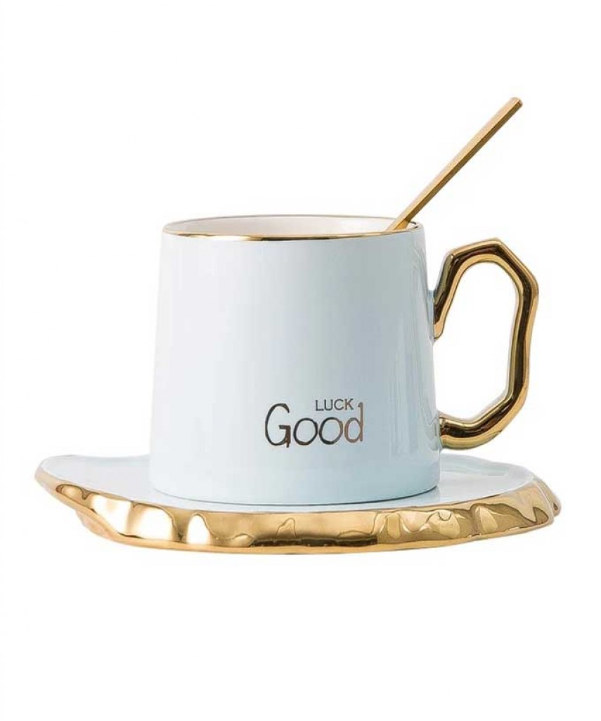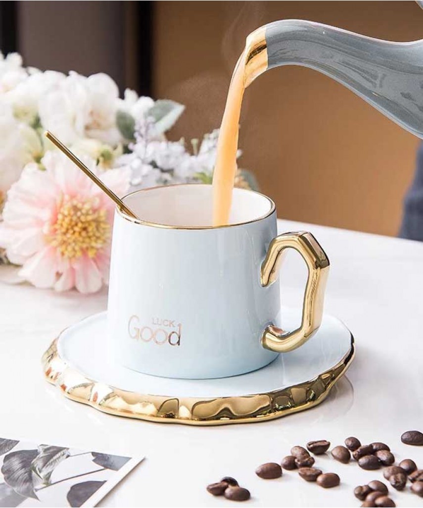 Luxury Nordic Gold Handle White Ireegular Ceramic Coffe Mug