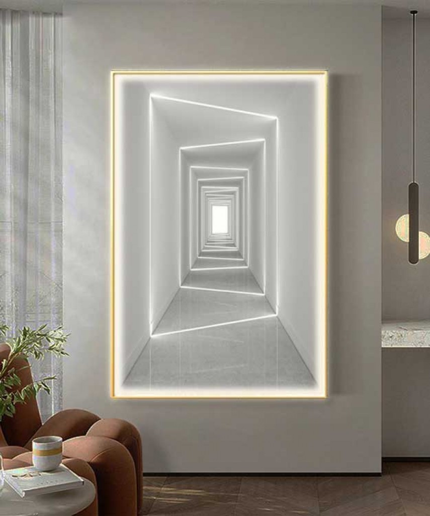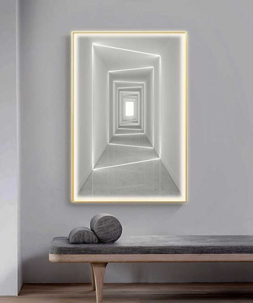 Gold Frame 80*120 Cm White 3D Efeect Crytsall Porsalein Painting With Led Light
