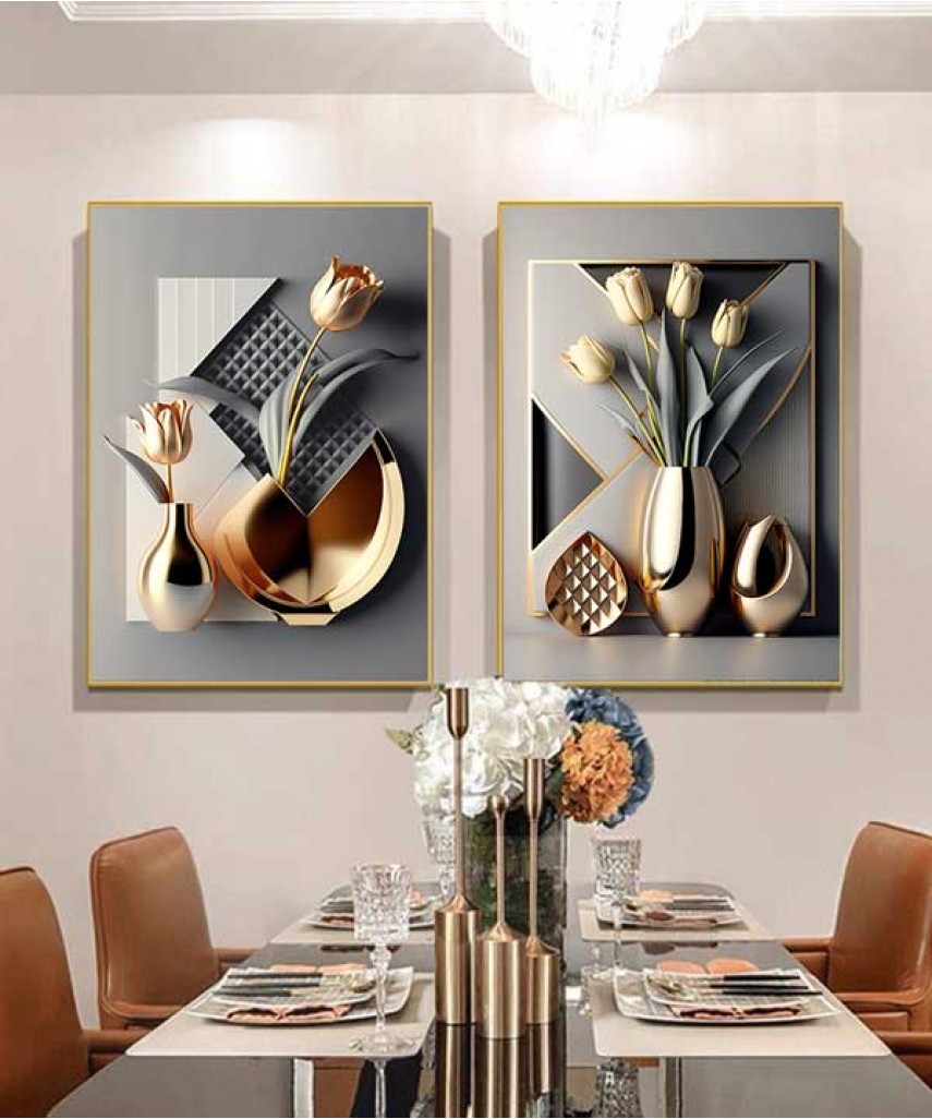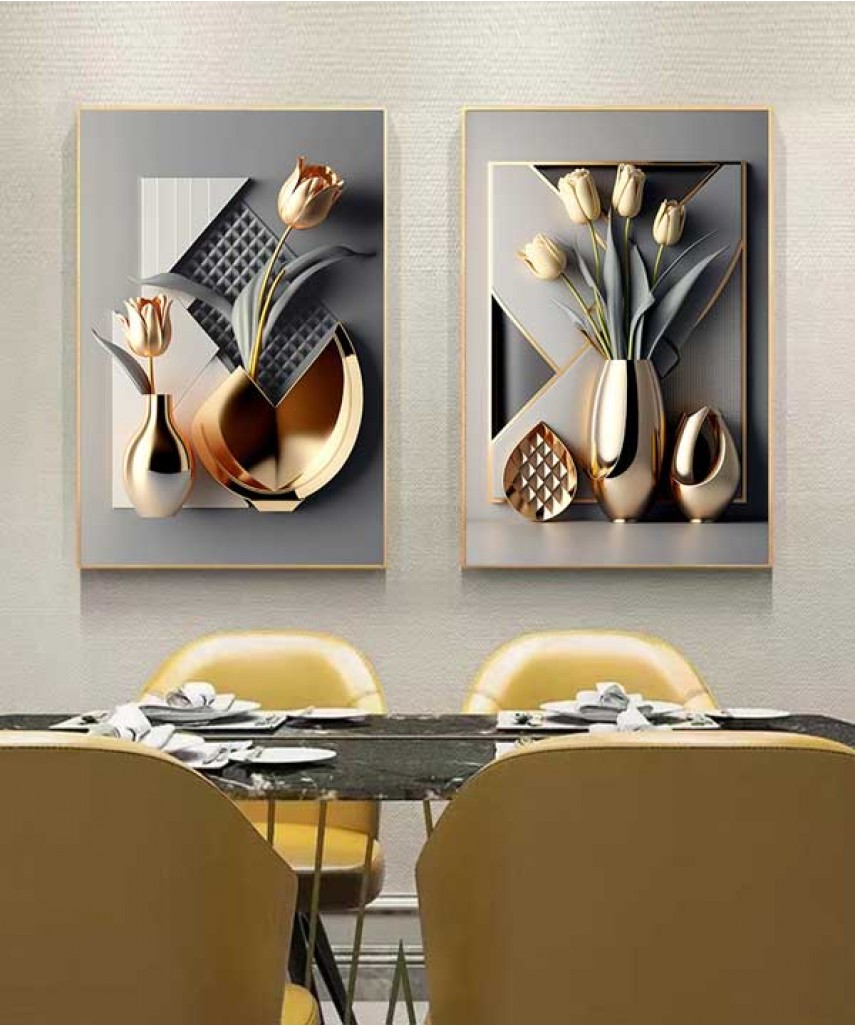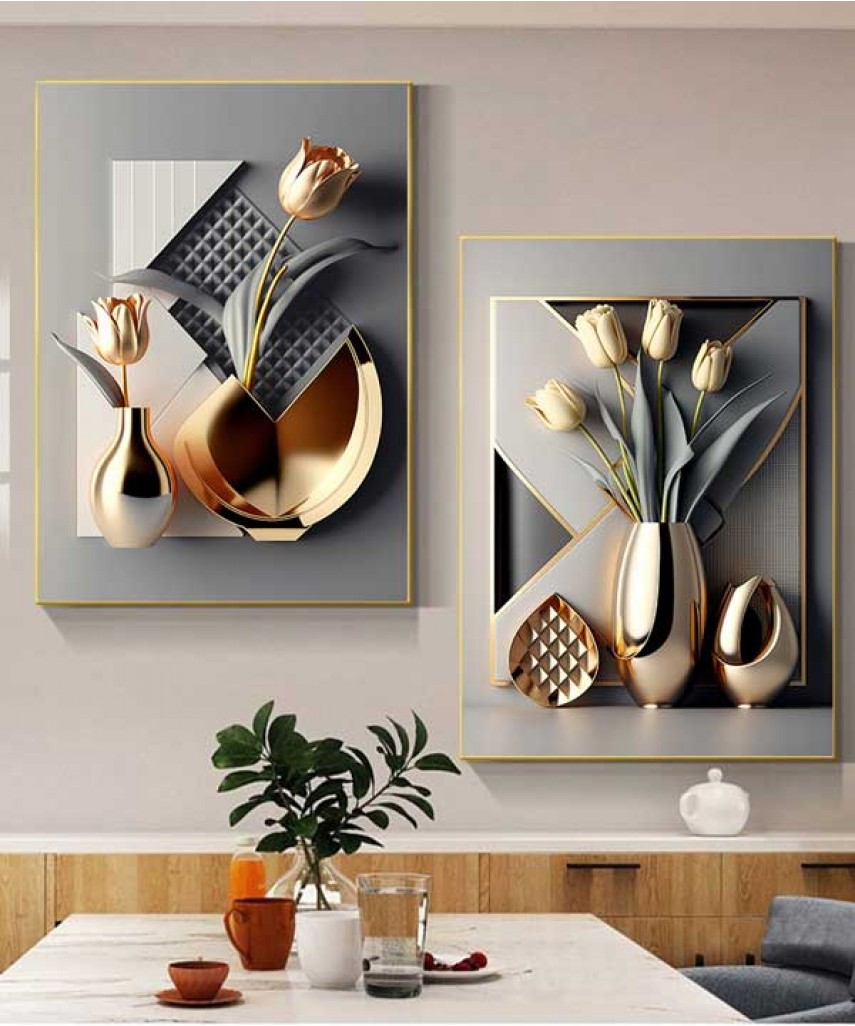 Gold Frame 60*90 Cm Crystall Painting Gold Vase Decoration For Living Room And Kitchen