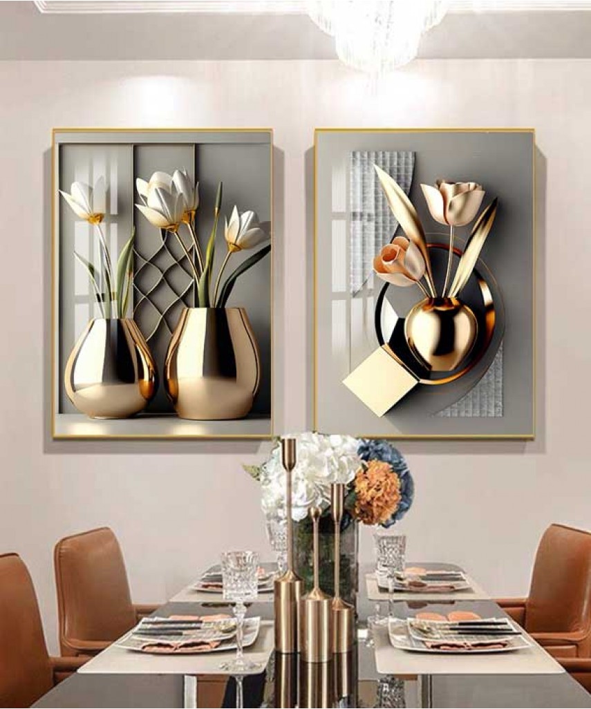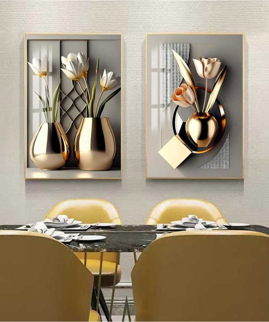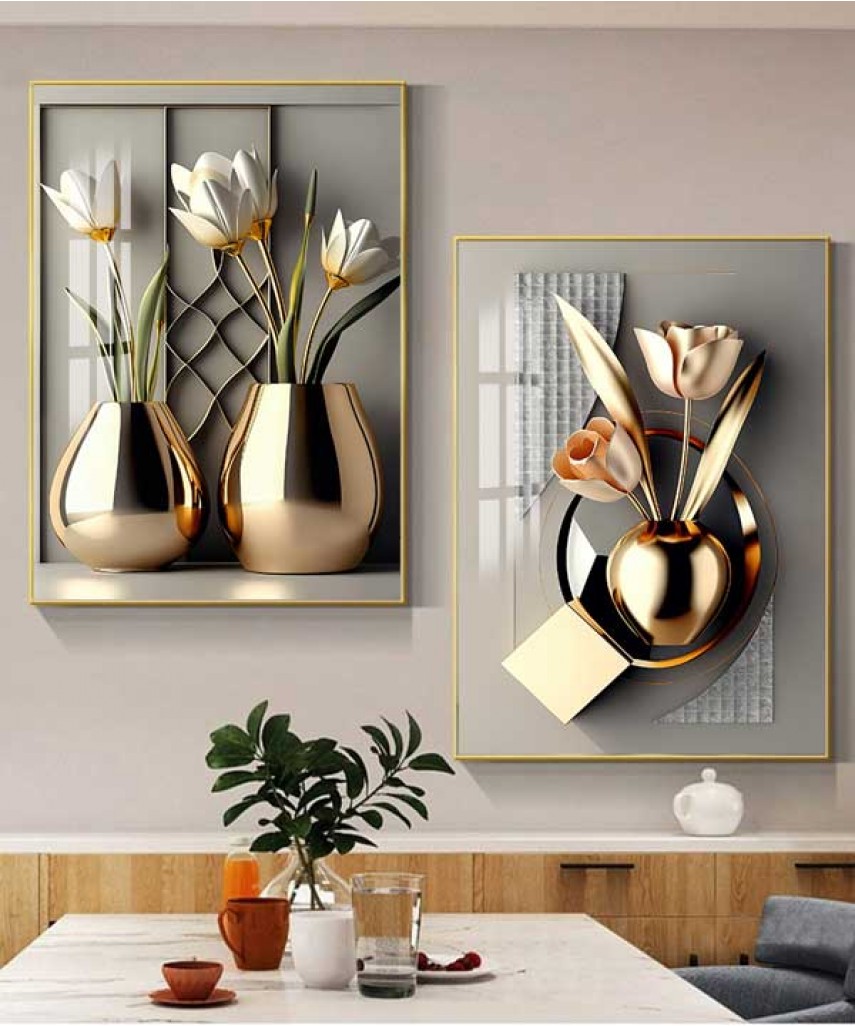 Gold Frame 60*90 Cm Crystall Porsalein Painting Gold Vase Decoration